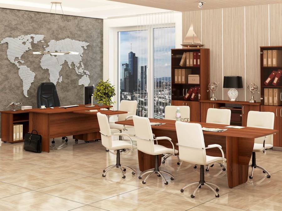 - Современный кабинет руководителя обеспечит выполнение всех необходимых процессов: работу с документами и их хранение, приëм посетителей, проведение переговоров и совещаний.