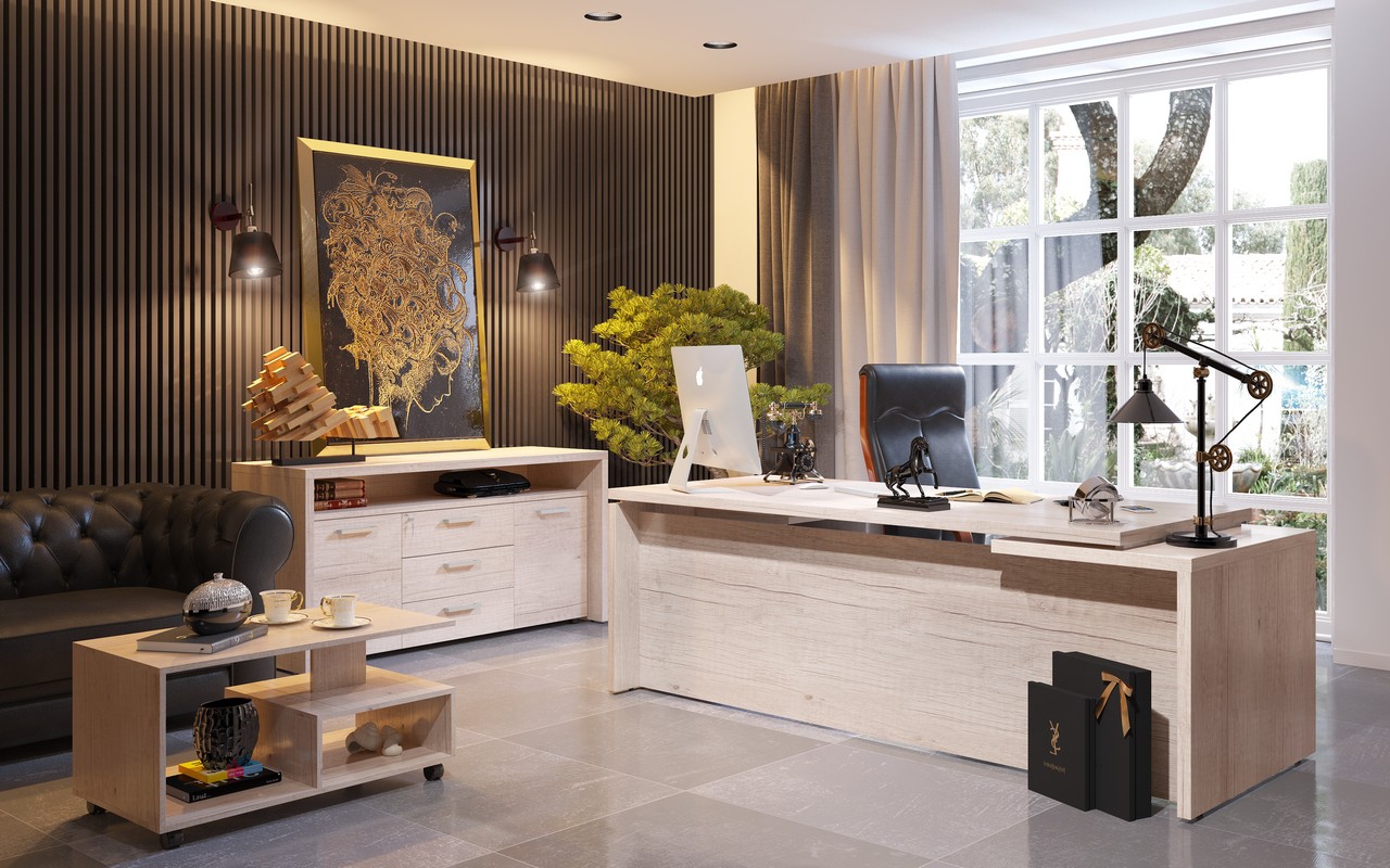 Современный кабинет в экономичном исполнении. Многоуровневые рабочие поверхности, яркие декоры и сбалансированный модельный ряд. Эффектный облик и высокое качество для тех, кто умеет считать деньги.