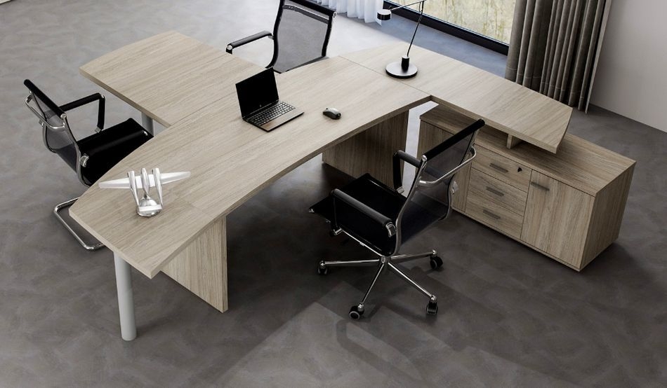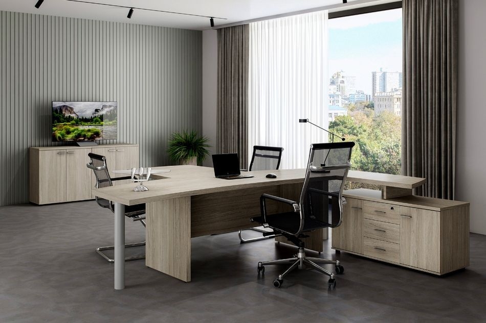 Кабинет WING — это символичное сочетание традиционных материалов для изготовления мебели с уникальными нелинейными формами столешницы кабинет. Кабинет для руководителей WING отражает современные взгляды на офисную мебель. Оригинальный дизайн кабинета подчеркивается уникальной формой столешницы, которая тяготеет к форме крыла. Это не только исключительная особенность дизайна, но и еë функциональная составляющая, обеспечивающая присоединение дополнительных рабочих поверхностей в виде боковых приставок нелинейной формы, а также традиционного брифинга.