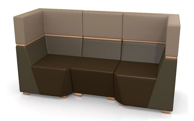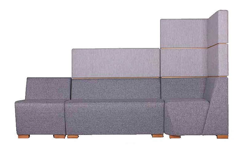 Срезанные углы и неровные линии связывают части диванов друг с другом и создают комфорт сидению. Три варианта высоты спинок модулей создают уютную, защищëнную атмосферу для личного пространства. А использование разных цветов обивки уровней внесëт яркий акцент в дизайн помещения. Кроме того, это единственная серия мебели toForm, у которой существует 4 варианта цвета опор и декоративных вставок.